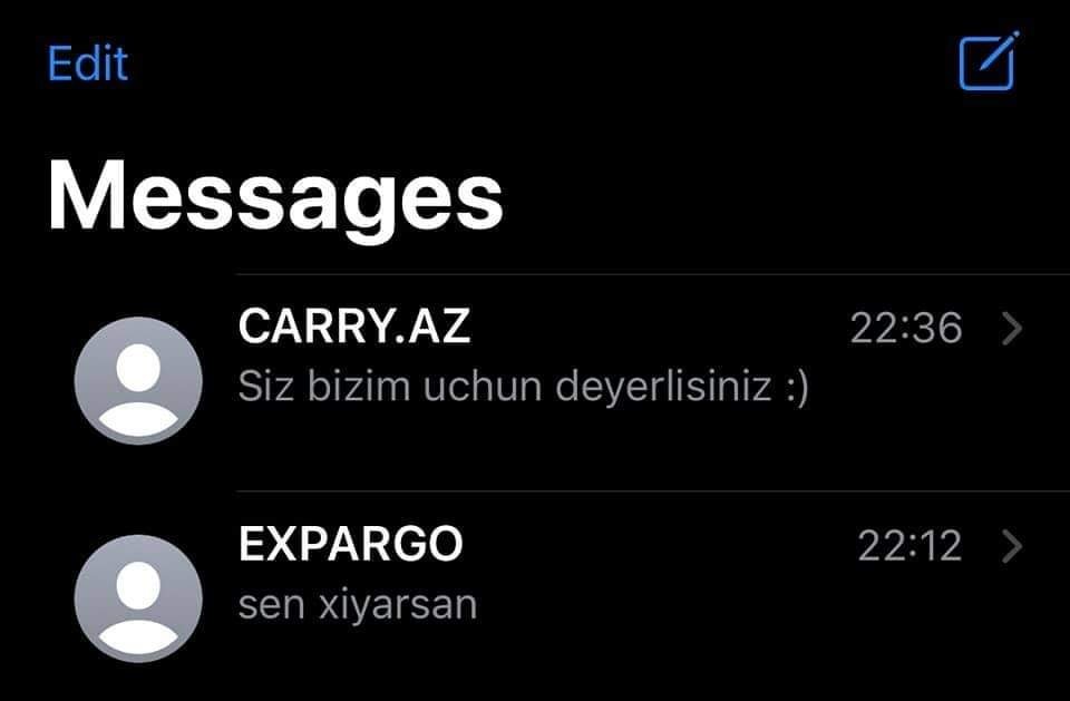 Expargo tərəfindən Müştərilərinə səhvən göndərilmiş ifadə sonrasına Carry.az-ın RTM nümunəsi